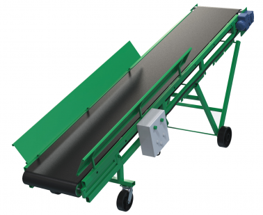Конвейер ленточный передвижной наклонный предназначен для перемещения горизонтально лежащих мешков с продуктом вверх на уровень до 1450 мм.