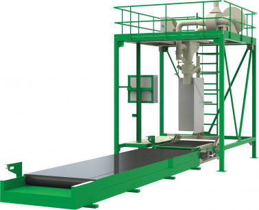 Оператор надевает вкладыш контейнера на загрузочный патрубок, кнопкой «РАЗДУВ» включает систему раздува контейнера и помогает ему принять нужную форму. При этом контейнер дном опирается на ленту весового конвейера