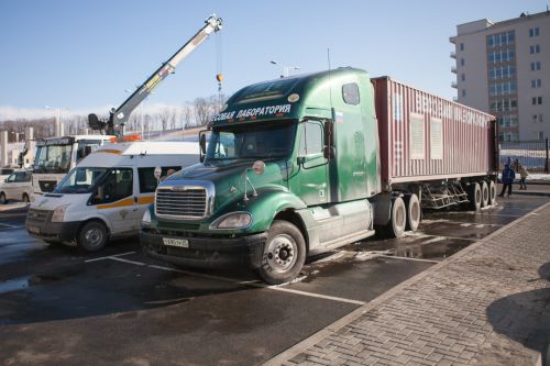 На открытом паркинге ДВФУ С.П. Гаврилюком (ООО «ПРИЗМА») и Т.С. Пащенко (ООО «ТЕНЗО-М-ПРИМОРЬЕ») участникам конференции были показаны в работе две специализированные тяжелые весоповерочные лаборатории (СПВЛ), созданные для настройки и поверки автомобильных и вагонных весов. Кроме этого, сотрудники Приморского УГАДН продемонстрировали гостям передвижной пост весового контроля на базе фургона «ФОРД-ТРАНЗИТ», укомплектованный производимыми «ТЕНЗО-М» портативными автомобильными весами «ВА-П».