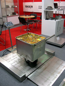 Для примера на стенде компании демонстрировалась работа системы, состоящей из двух цифровых грузоприемных устройств – ВПА и ВМ, подключенных к одному преобразователю ТЦ-017. Каждый посетитель мог ощутить себя в роли оператора-весовщика мясного цеха или отдела отгрузки товара: просматривать показания обоих весов, составлять документы отгрузки сосисок, сервелата и др. продуктов с реальными значениями веса, использовать сканер штрих-кодов или клавиатуру для ввода типа продукта, распечатывать липкие этикетки и отчеты об отгрузке. В реальном времени можно было контролировать результаты работы разных операторов.