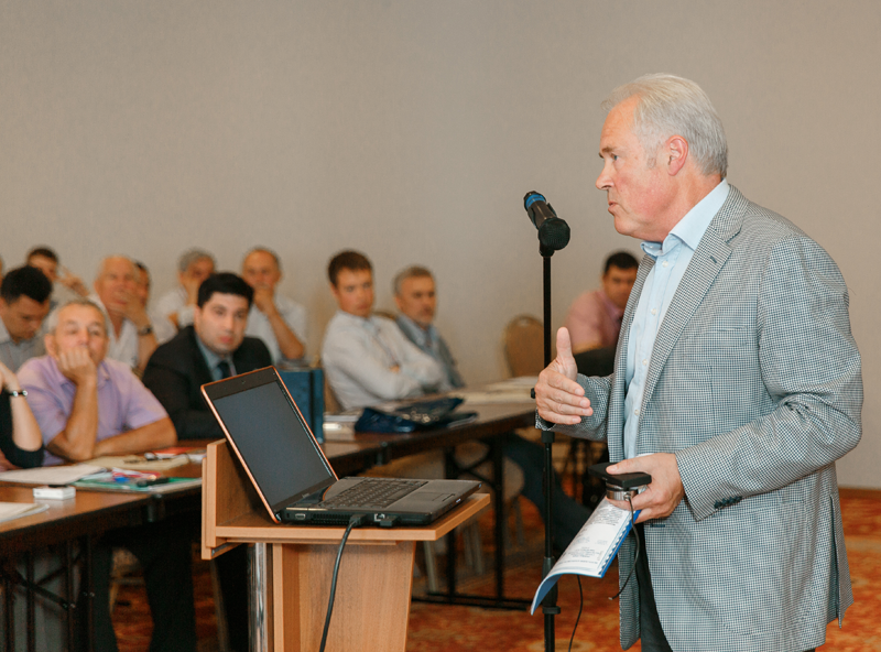 Доклад Сенянского М.В. содержал ожидаемую многими работниками служб весового контроля новость о завершении разработки методики выполнения измерений (МВИ) общей массы АТС и суммарной нагрузки на оси одной тележки с помощью портативных весов «ВА-П». Скоро сотни владельцев таких весов получат ее официальную версию по почте. Кроме этого, был продемонстрирован действующий макет нового силоизмерительного модуля (линейного дорожного датчика осевых нагрузок) системы «СВК» меньшей примерно в 1,5 раза высоты, что улучшит условия его совместной работы с дорожной одеждой. Был также «засвечен» один из вариантов испытательного стенда для аттестации линейных дорожных датчиков, который позволит оценивать характеристики не только своих, но и зарубежных изделий.