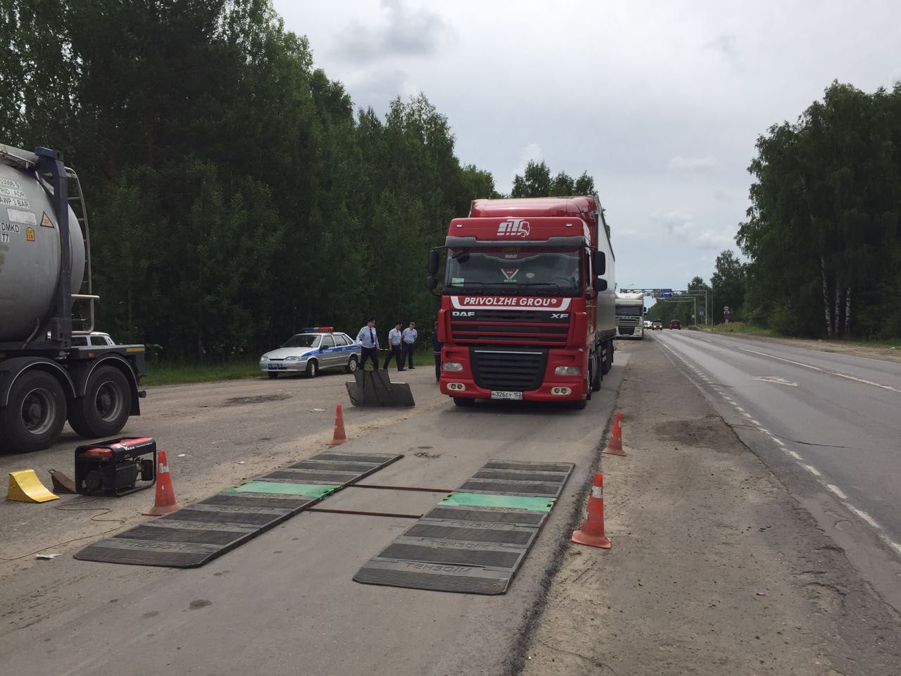 Недавно в Балахнинском районе Нижегородской области по инициативе Торгово-промышленной палаты региона состоялась публичная демонстрация работы нашей системы СВК, установленной на посту автоматического весового и габаритного контроля. В присутствии представителей перевозчиков – руководства областного филиала АСМАП – ассоциации международных автомобильных перевозчиков, руководства региональных транспортных компаний, руководителей Центра безопасности движения (ЦБД), Управления дорожного хозяйства, МРФ «ВОЛГА» ПАО «Ростелеком», а также ГИБДД области были проведены серии контрольных проездов большегрузных АТС с твердыми и жидкими грузами. Полная масса, габаритные размеры и осевые нагрузки участвовавших в испытаниях АТС определялись посредством включенных в Государственный Реестр средств измерений подкладных автомобильных весов «ВА-20П» нашего производства, которыми был оснащен автомобиль-фургон мобильного поста весового контроля ЦБД.