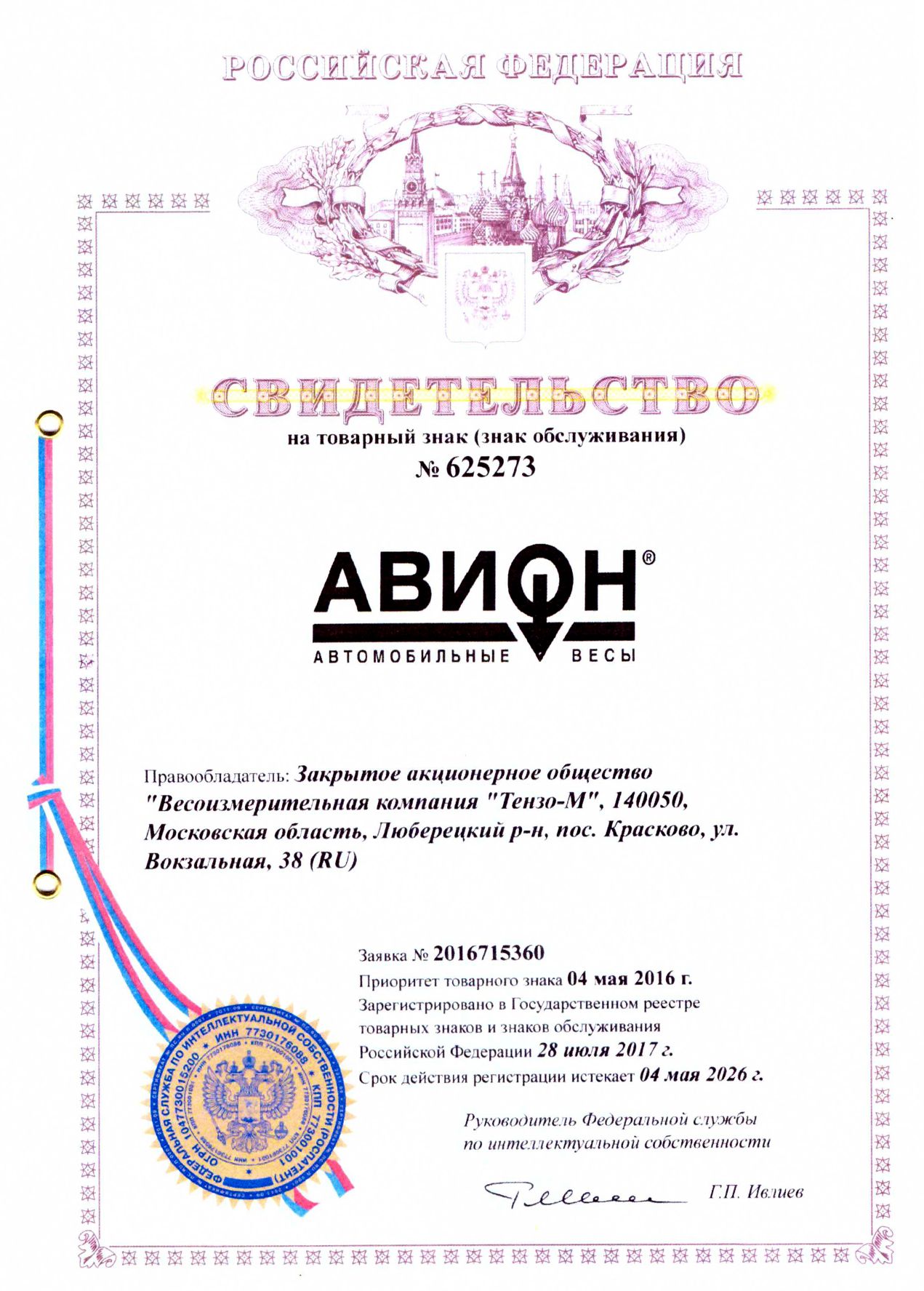 Логотип «АВИОН» приобрел статус зарегистрированного товарного знака, а компания стала не просто официальным производителем, но и правообладателем одноименной торговой марки автомобильных весов. «ТЕНЗО-М» обрела надежное и безотказное средство для пресечения попыток любого использования торгового знака другими лицами без согласия владельца.