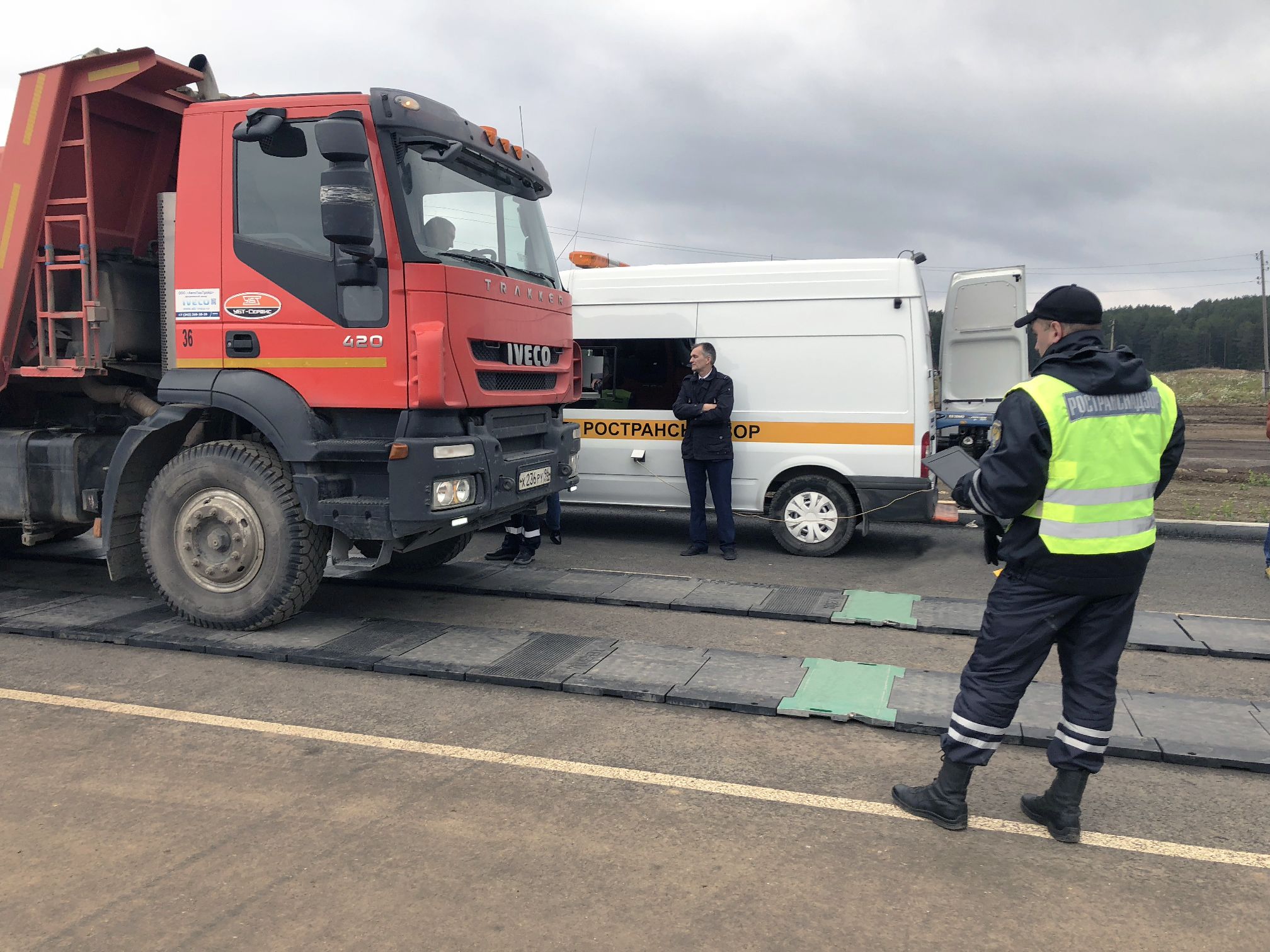25 и 26 октября по инициативе Уральского филиала ассоциации международных автомобильных перевозчиков (АСМАП), Минтранса Свердловской области и уполномоченного по защите прав предпринимателей, такие публичные демонстрации работы трех СВК нашего производства были проведены на постах, расположенных вблизи Екатеринбурга, Нижнего Тагила и Серова. Десятикратно взвешенные поосно силами сотрудников Уральского УГАДН в присутствии авторитетной экспертной комиссии на наших же портативных автомобильных весах ВА-П, три контрольных АТС – трехосный самосвал, шестиосный автопоезд с полуприцепом «ТОНАР» и пятиосный бензовоз – последовательно прогонялись через АВГК со скоростями от 40 до 80 км/ч в обоих направлениях.