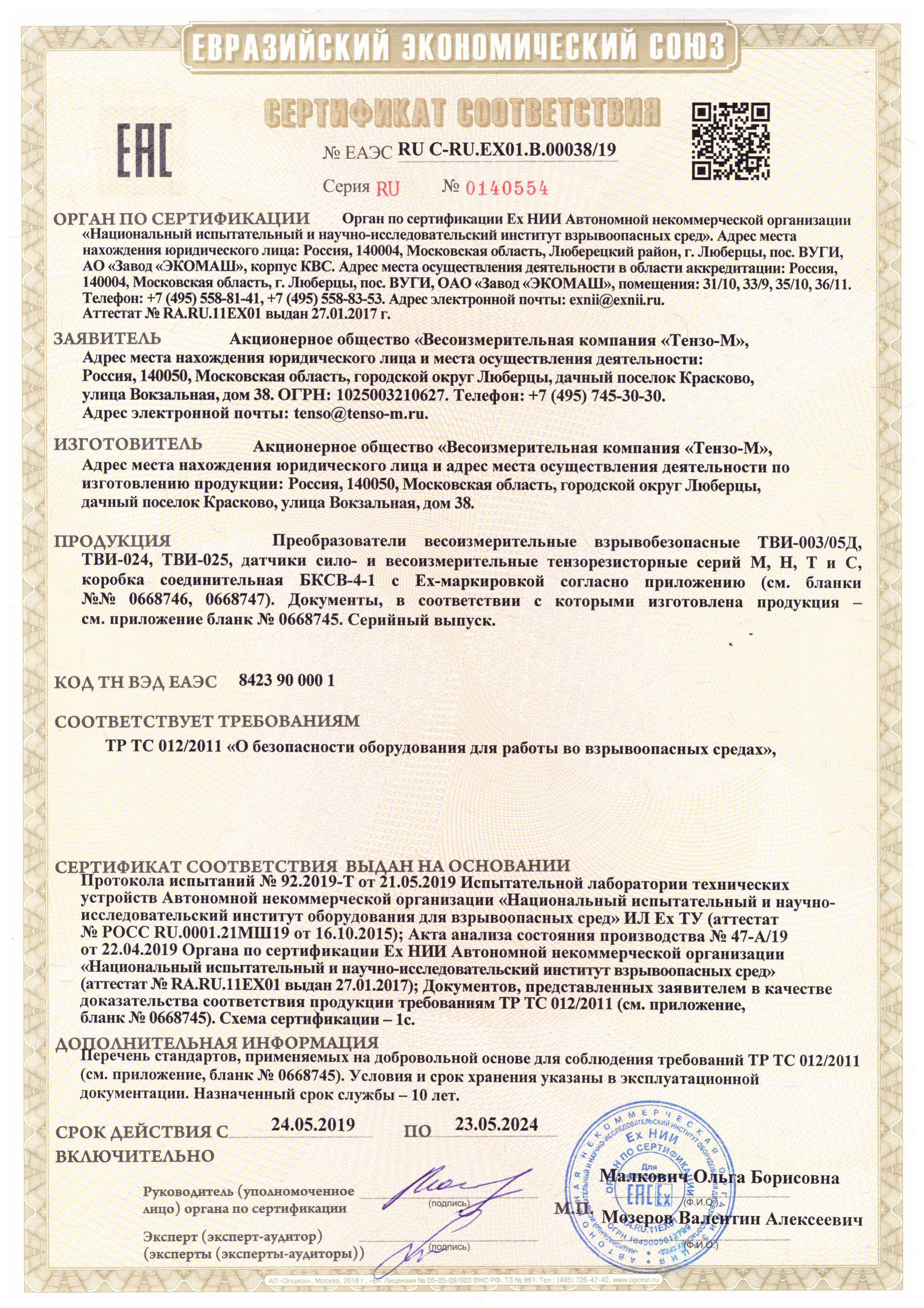 Помимо весоизмерительных преобразователей, новый сертификат выдан и на основные типы выпускаемых тензодатчиков: датчики сжатия типа М, сдвиговые балки типа Н, балки изгиба типа Т и датчики сжатия-растяжения типа С также соответствуют требованиям ТР ТС 012/2011.