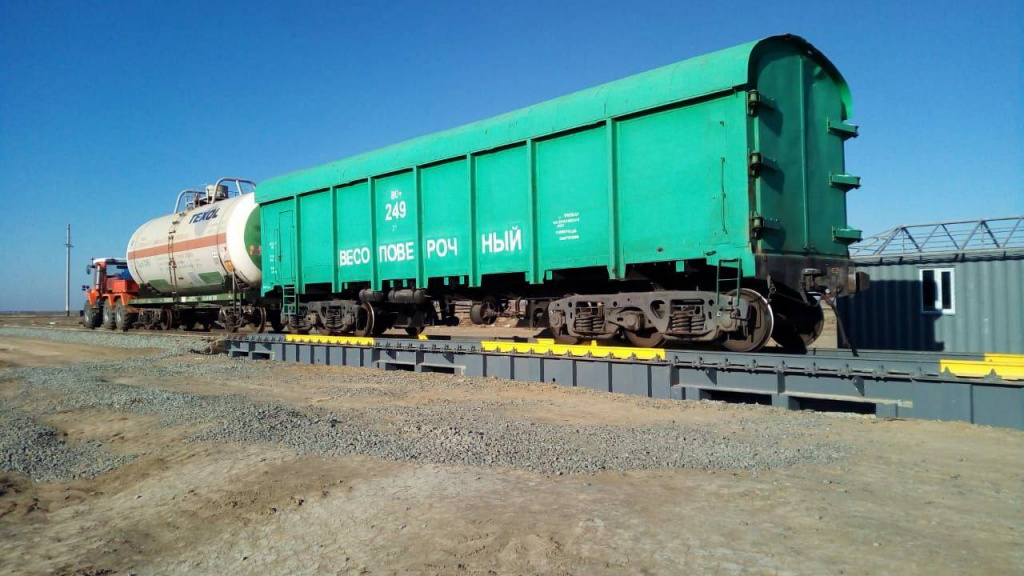 На одном из пунктов весового контроля крупнейшего железнодорожного оператора Республики Казахстан, специализирующегося на транспортировке сжиженного углеводородного газа (СУГ), специалисты «Тензо-М» смонтировали и запустили в эксплуатацию новые вагонные весы РД-ДР3-150. Весы были специально разработаны для статического взвешивания и взвешивания в движении уникальных для рынка стран СНГ шестиосных вагонов-цистерн модели 15-9541-01, созданных для повышения эффективности перевозочного процесса. Цистерна представляет собой два сочлененных котла, которые опираются на три тележки и соединены друг с другом беззазорным сцепным устройством. Такое конструктивное решение обеспечивает необходимый относительный поворот между котлами для беспрепятственного прохождения составом криволинейных участков пути и горок.