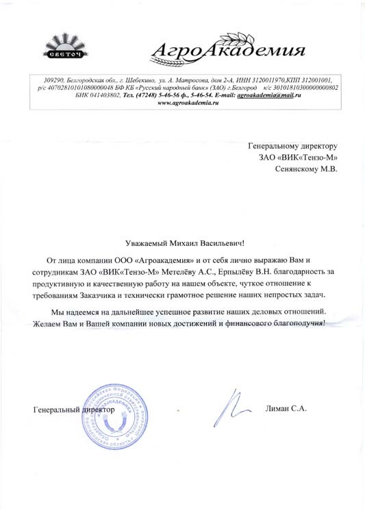 Генеральный директор АО ВИК «Тензо-М», кандидат технических наук, Сенянский М.В.