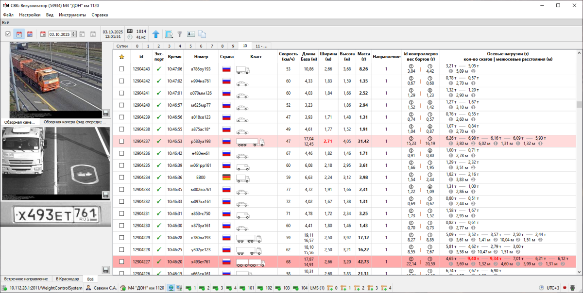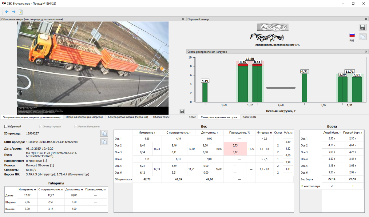 • индикация параметров ТС, выходящих за допустимые пределы в соответствии с приказом Министерства транспорта РФ от 31 августа 2020 г. № 348 «Об утверждении Порядка осуществления весового и габаритного контроля транспортных средств»
