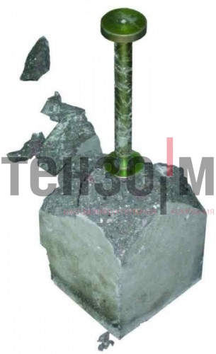 Рис. 12. Бетонный образец полностью разрушен при нагружении на гидравлическом прессе. Тензометр сохранил работоспособность. |