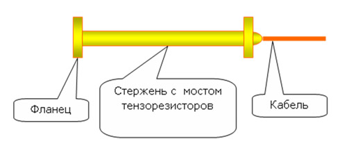 Тензометр (Рис. 1) состоит из стержня заданной жесткости, внутри которого размещен мост тензорезисторов, двух силопередающих фланцев, и кабеля. Стержень покрыт пластиковой пленкой, не имеющей адгезии к бетону.