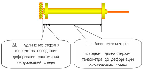 Например, если жесткость окружающего бетона или породы и жесткость тензометра одинаковы или близки, то тензометр сопротивляется растяжению или сжатию, так же, как и окружающая его среда, т.е. становится частью этой среды, и тем самым не влияет на ее деформацию. Проще говоря, бетон или порода при деформации под нагрузкой не «замечают» присутствия тензометра, и деформируются так, как будто он отсутствует.