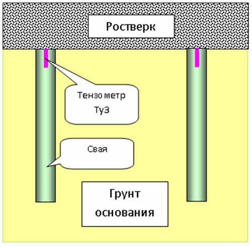 Контроль несущей способности сваи закладными тензометрами существенно дешевле и организационно проще, чем датчиками силы.