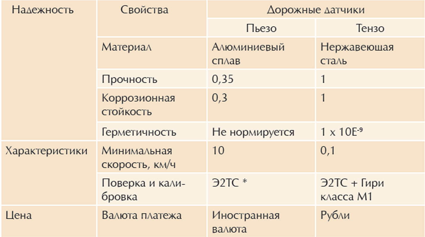 Абстрагируясь от национальности разработчиков и производителей, а также эмоций, рассмотрим в табличной последовательности технические и эксплуатационные характеристики дорожных датчиков обоих типов (Таблица 1).