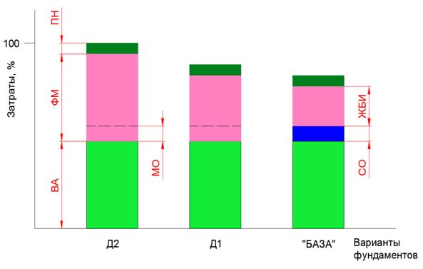 Рис. 2. Диаграмма сравнительных затрат на автомобильные весы с фундаментами разных типов.